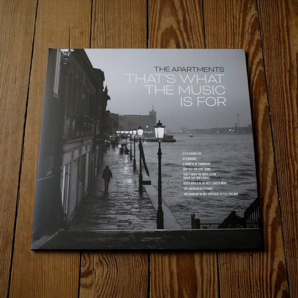 The Apartments "That's What the Music Is For" [TAL136] | 1. It's a Casino Life (04:24) - 2. Afternoons (04:58) - 3. A Handful of Tomorrow (04:12) - 4. Another Sun Gone Down (04:22) - 5. That’s What the Music is For (When the Fair’s Over) (04:00) - 6. Death Would Be My Best Career Move (03:12) - 7. The American Resistance (02:36) - 8. You Know We're Not Supposed to Feel This Way (06:09)